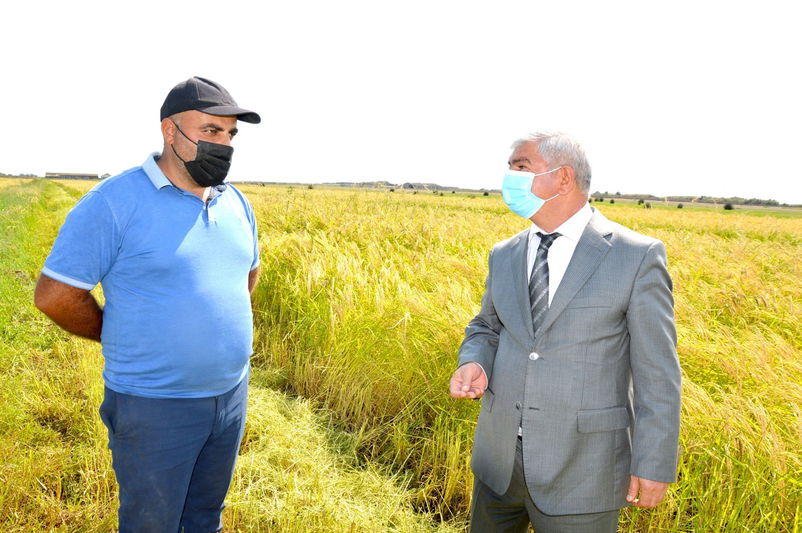 Masallı RİH başçısı çəltik biçini zamanı mövcud vəziyyətlə maraqlanıb