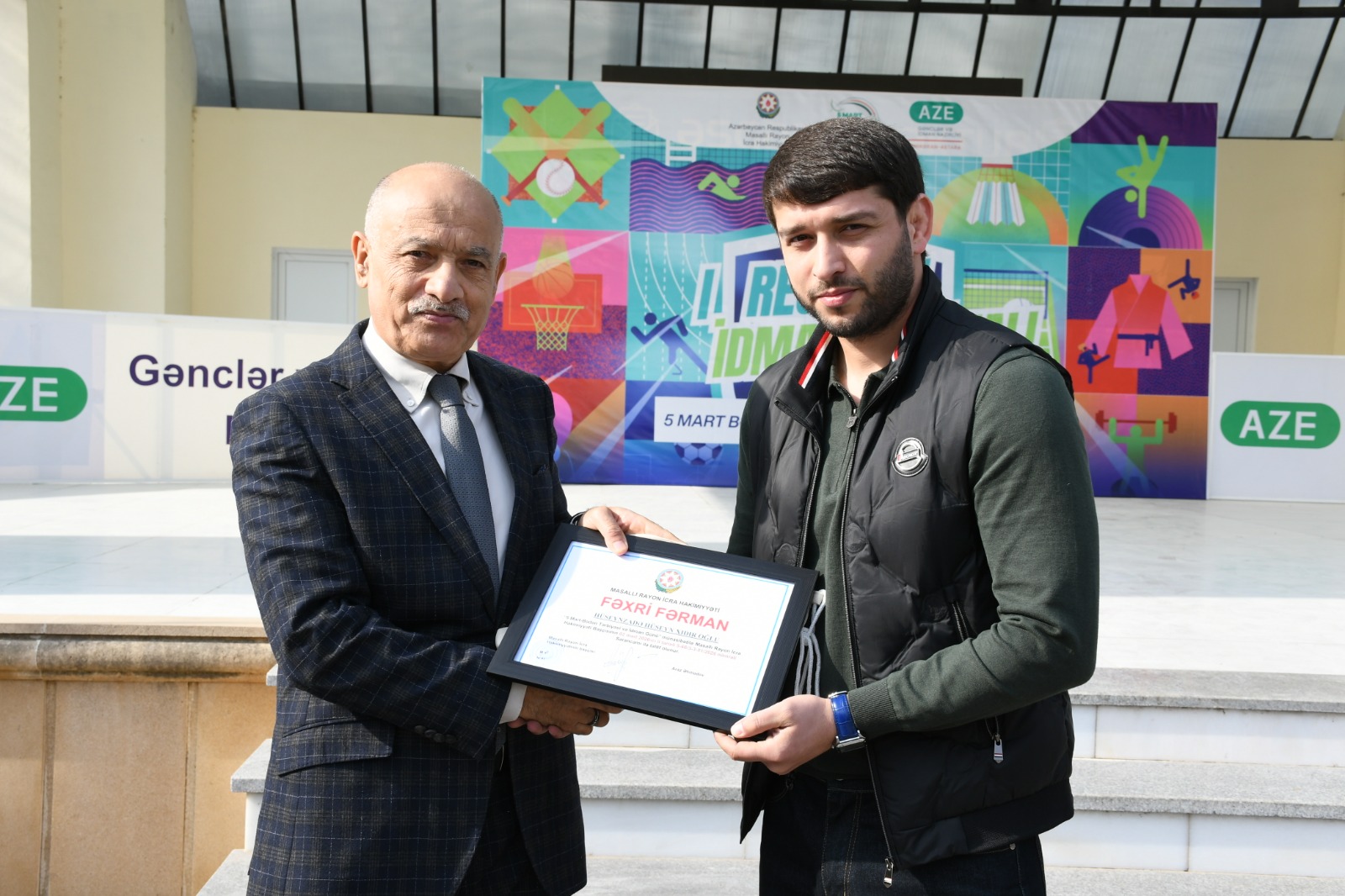 Sonra tədbirin ev sahibi, Masallı Rayon İcra Hakimiyyətinin başçısı cənab Araz Əhmədov təbrik nitqi ilə çıxış edərək bildirdi ki, martın 5‑i Azərbaycanda idmanın, sağlam həyat tərzinin və gənc nəslin fiziki inkişafının təbliği üçün çox böyük əhəmiyyətə malikdir. Bu əlamətdar günün təsis edilməsi Azərbaycan Respublikasının Prezidenti cənab İlham Əliyevin 2005‑ci il 4 mart tarixli Sərəncamına əsaslanır və ölkəmizdə idmanın geniş vüsət alması üçün mühüm təkan olmuşdur.