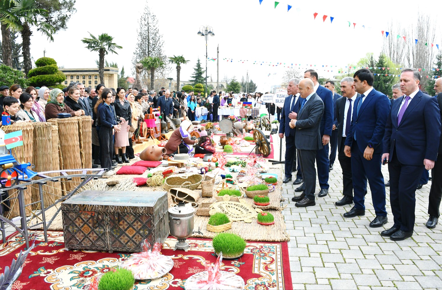 Tədbir çərçivəsində əvvəlcə Rayon İcra Hakimiyyətinin başçısı Araz Əhmədov bayram münasibətilə təşkil olunmuş meydanda Novruz atributları, xalq sənətkarlığı nümunələri, milli mətbəx təamları və müxtəlif sərgilərlə tanış olmuşdur.